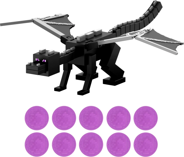 Oplev episke kampe fra Minecraft-universet med den imponerende Ender-drage. Stor, sort, pixeleret stil, leddelte vinger, ben og hale samt effekten “Drageånd” sikrer spændende action og et flot udstillingsstykke på børneværelset.