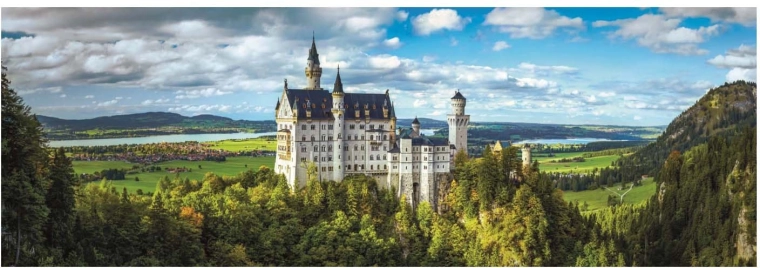Oplev Bayerns charme med CLEMENTONIs panoramapuslespil med motivet af slottet Neuschwanstein. Takket være den præcise forarbejdning af brikkerne og de mættede farver går samlingen glat, og det færdige billede virker ekstraordinært elegant. Panoramaformatet tager sig smukt ud på både væg og hylde.
