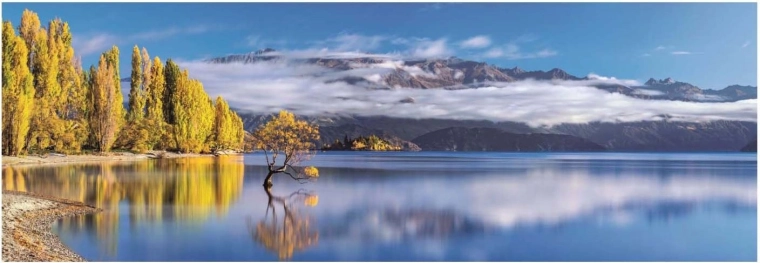 CLEMENTONI panoramapuslespil med motivet af Lake Wanaka giver en uforglemmelig oplevelse for alle natur- og puslespilsentusiaster. Takket være detaljeret tryk og levende farver træder det fine lysspil på vandoverfladen frem og forvandler det færdige billede til en attraktiv indretningsdekoration.
