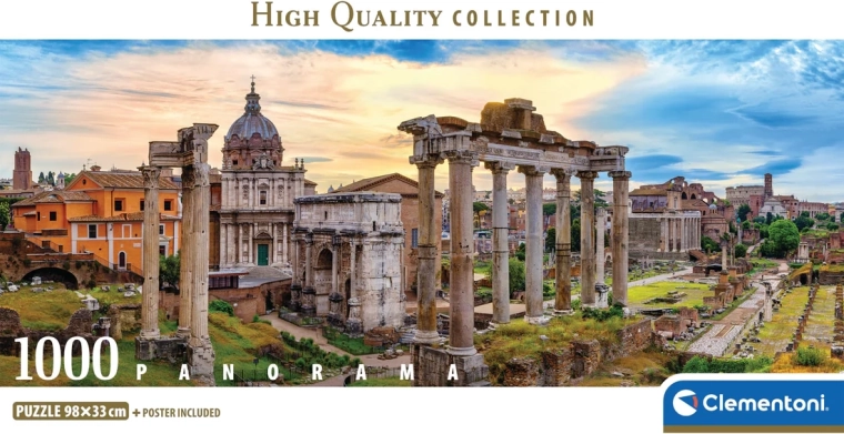 Nyd afslapning med et panoramabillede af Rom ved solnedgang. Disse kvalitetspuslespil fra Clementoni tilbyder 1000 brikker, præcise udstansninger og et imponerende format på 98 × 33 cm når det er samlet.