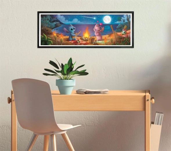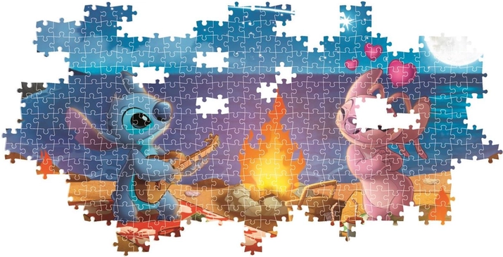 Træd ind i Lilo & Stitchs magiske univers med et panoramapuslespil, der viser en atmosfærisk nat ved lejrbålet. Takket være den høje kvalitet og de kraftige farver er samlingen behagelig, og resultatet vil tage sig flot ud på væggen eller på en hylde.