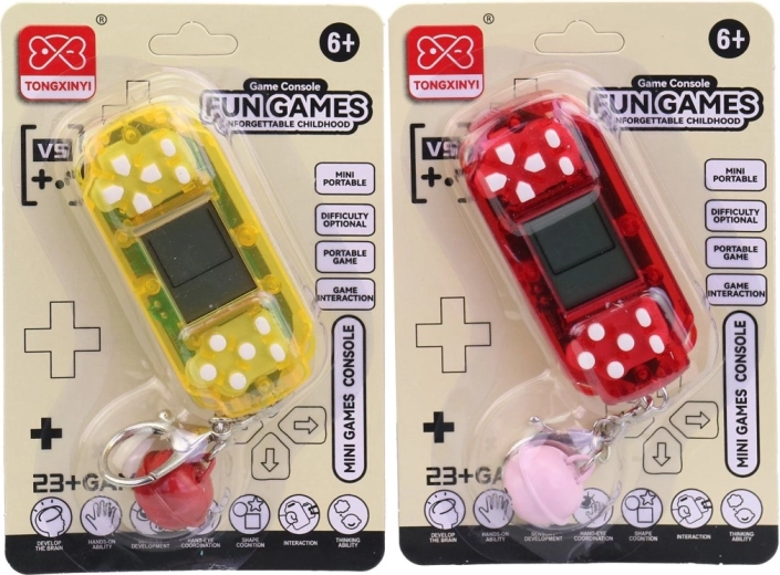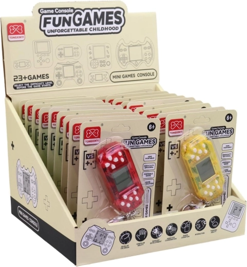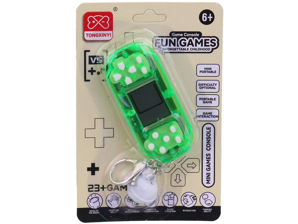 Dette elektroniske spil kombinerer enkel betjening med et kompakt design, så det passer perfekt i lommen eller rygsækken. Den robuste plastkonstruktion sikrer lang levetid og pålidelig drift.