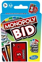 Monopoly Bid er et dynamisk spil for 2 til 5 spillere, der konkurrerer i auktioner om ejendomme. Ved hjælp af pengekort deltager du i auktioner for at samle ejendomsgrupper. Spillet indeholder også actionkort, som giver overhånd over modstanderne og strategiske fordele.