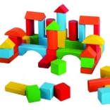 Farverigt træbyggesæt med 50 kvalitetsforarbejdede klodser i forskellige former til små byggere. Understøtter finmotorik, kreativitet og rumlig forestillingsevne. Fremstillet af sikkert træ, opfylder EU-standarder og er velegnet til børn fra 2 år.