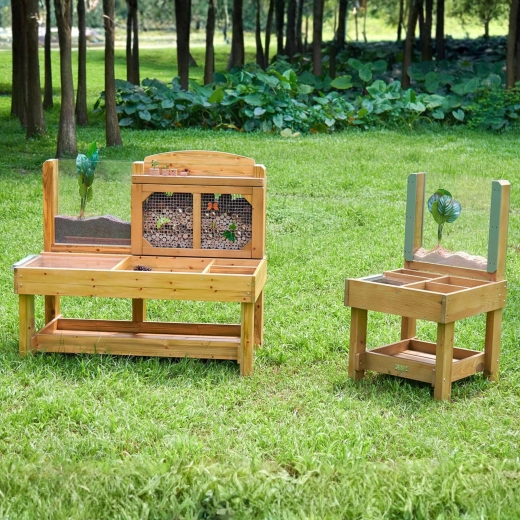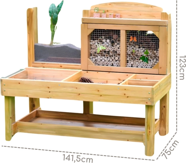 Udforsk naturen direkte i haven med det træbaserede observationssted fra Masterkidz. Her kan børn samle og sortere naturmaterialer, iagttage insekter i et sikkert “insekthotel” og følge rodvækst i et gennemsigtigt panel. Den robuste, imprægnerede konstruktion med gennemsigtige skåle og låg understøtter nysgerrighed, finmotorik og selvstændig udforskning fra 3 år.