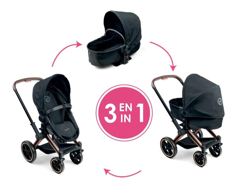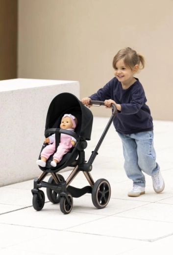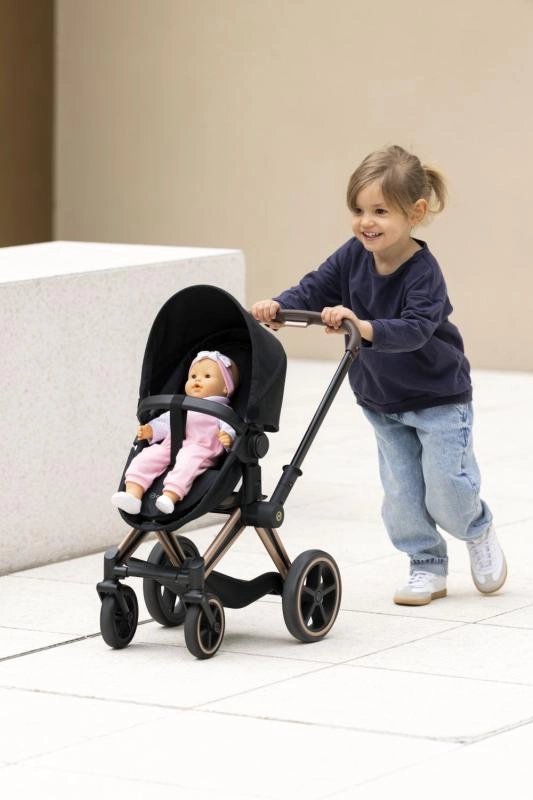 Dukkevognen CYBEX Black 3-i-1 er udviklet i samarbejde med CYBEX og er tro mod den ikoniske model PRIAM. Børn kan lege forældre med stil og funktionalitet som i en rigtig barnevogn. Takket være den gennemtænkte konstruktion fungerer den som dyb lift, sportsvogn og en komfortabel bærbar seng.