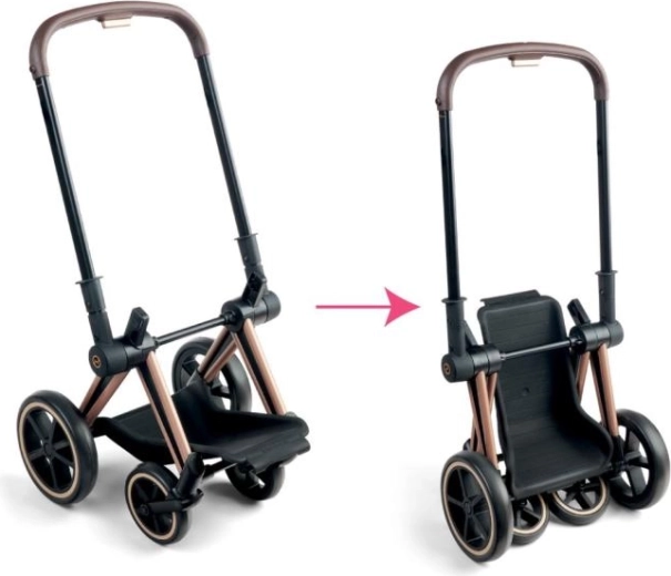 Let betjening, hurtig nedfældning og foldning. Den robuste nederste kurv rummer alt, hvad der behøves til turen med dukken.