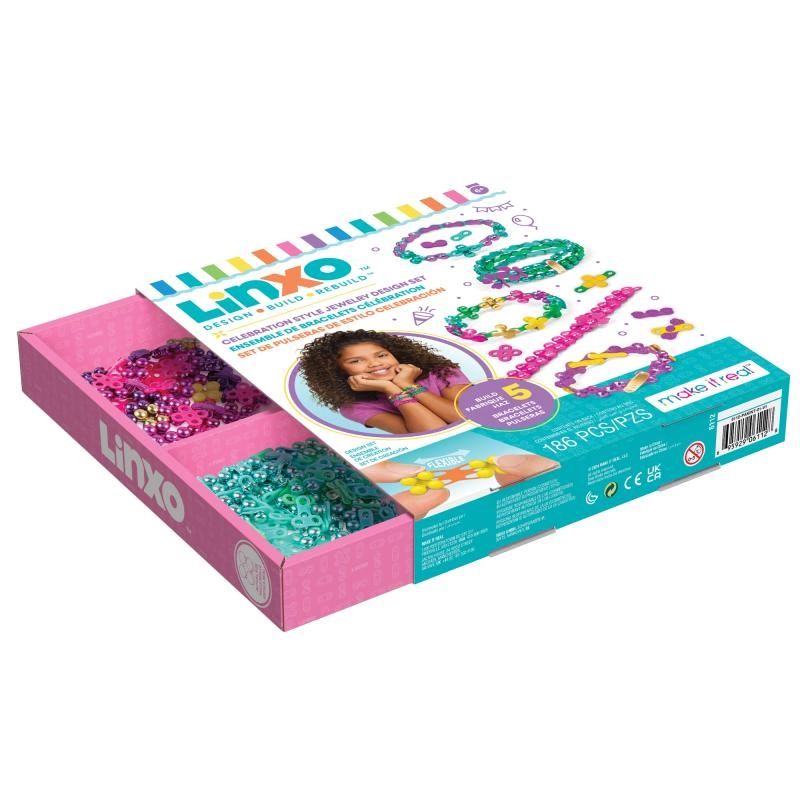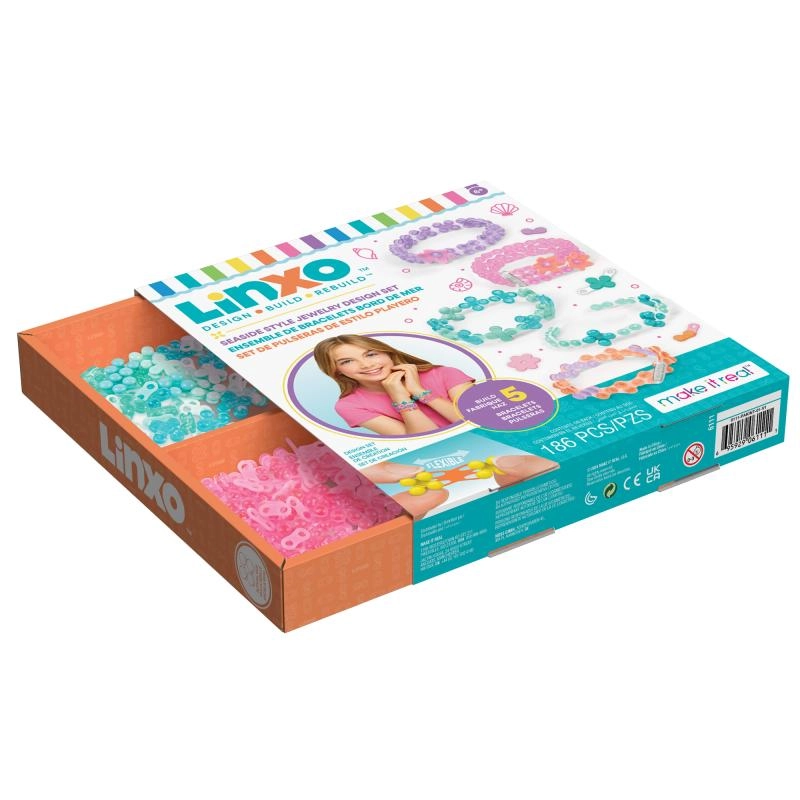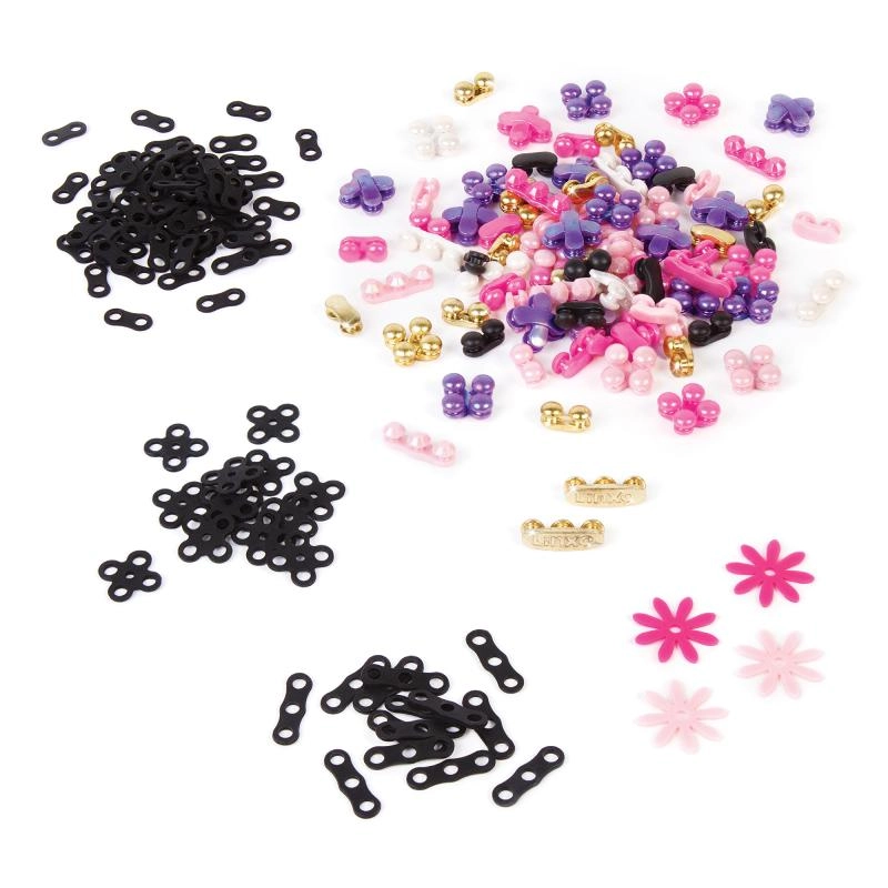 Linxo smykkesæt giver børn mulighed for at udtrykke deres egen stil. Med det smarte kliksystem kan delene nemt kombineres, længden justeres, og alt kan altid skilles ad og bygges op igen. Skab unikke armbånd, vedhæng eller små pyntedele, som kan mixes og lagdeles.