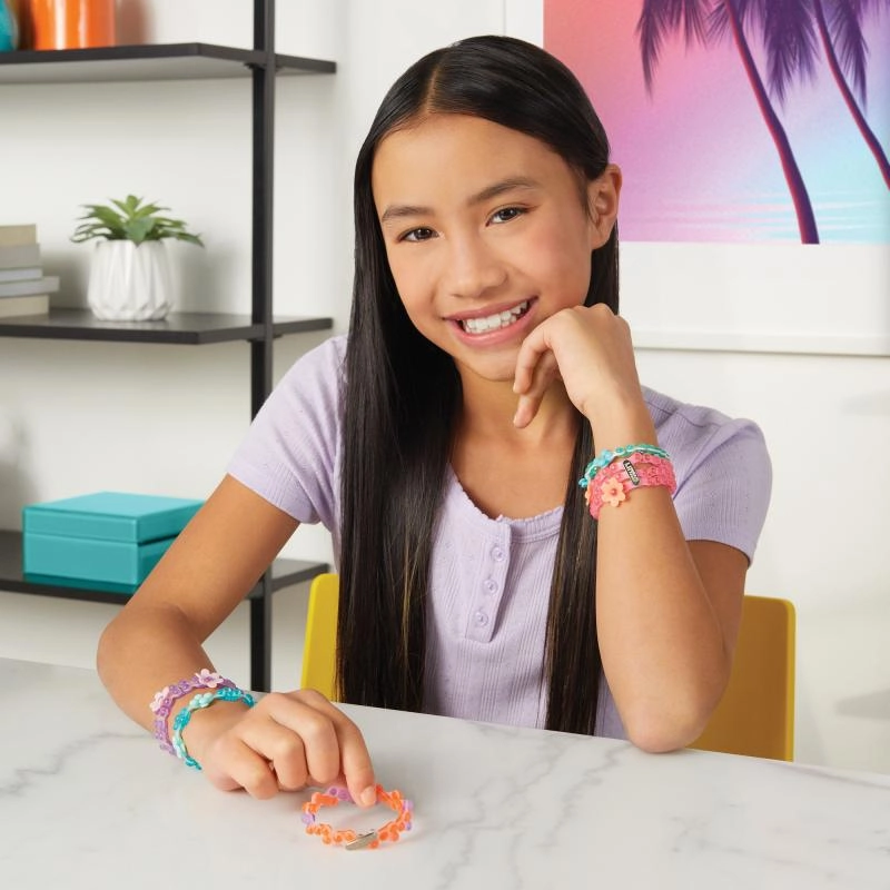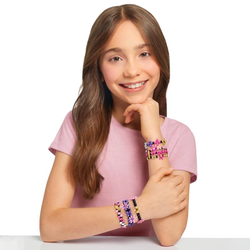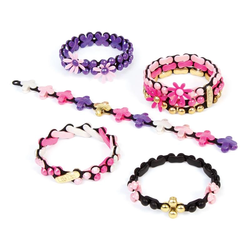 Pakken indeholder nok klikdele til at lave op til fem forskellige armbånd, som kan kombineres og stables efter ønske.