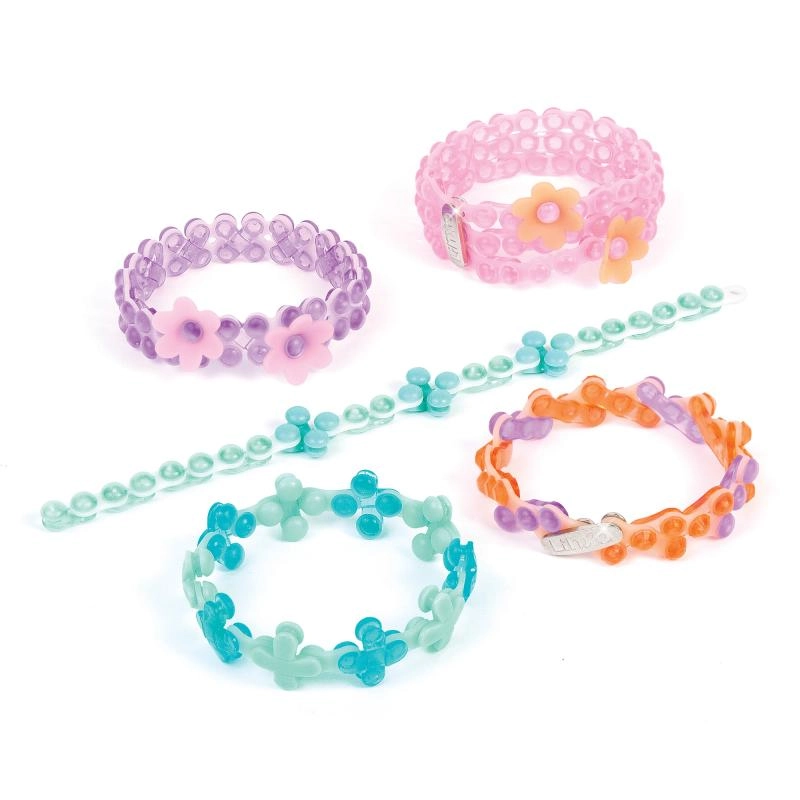 Forlæng eller forkort armbåndene på et øjeblik. Delene klikker nemt sammen og holder formen, så de sidder godt på børnehåndled.