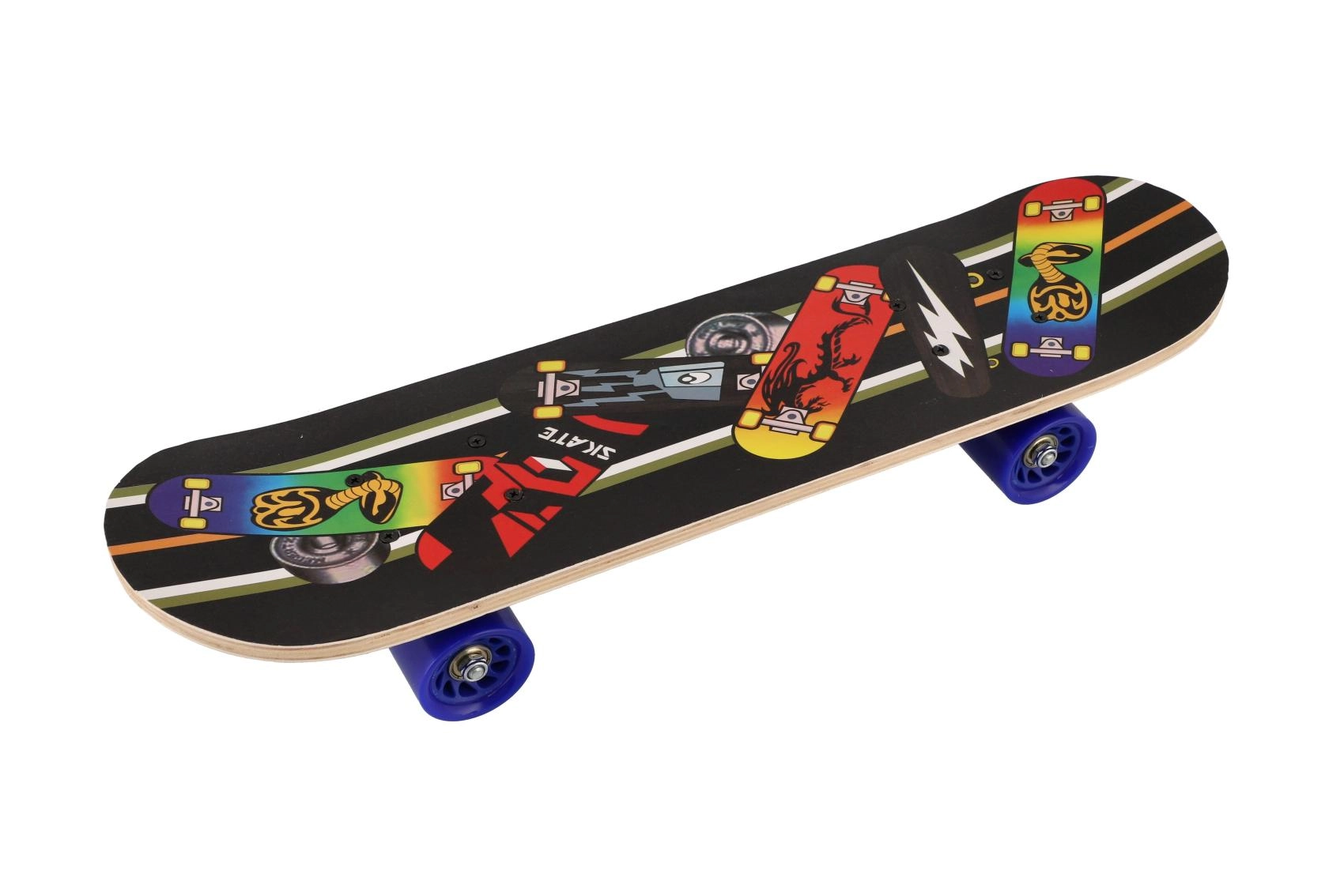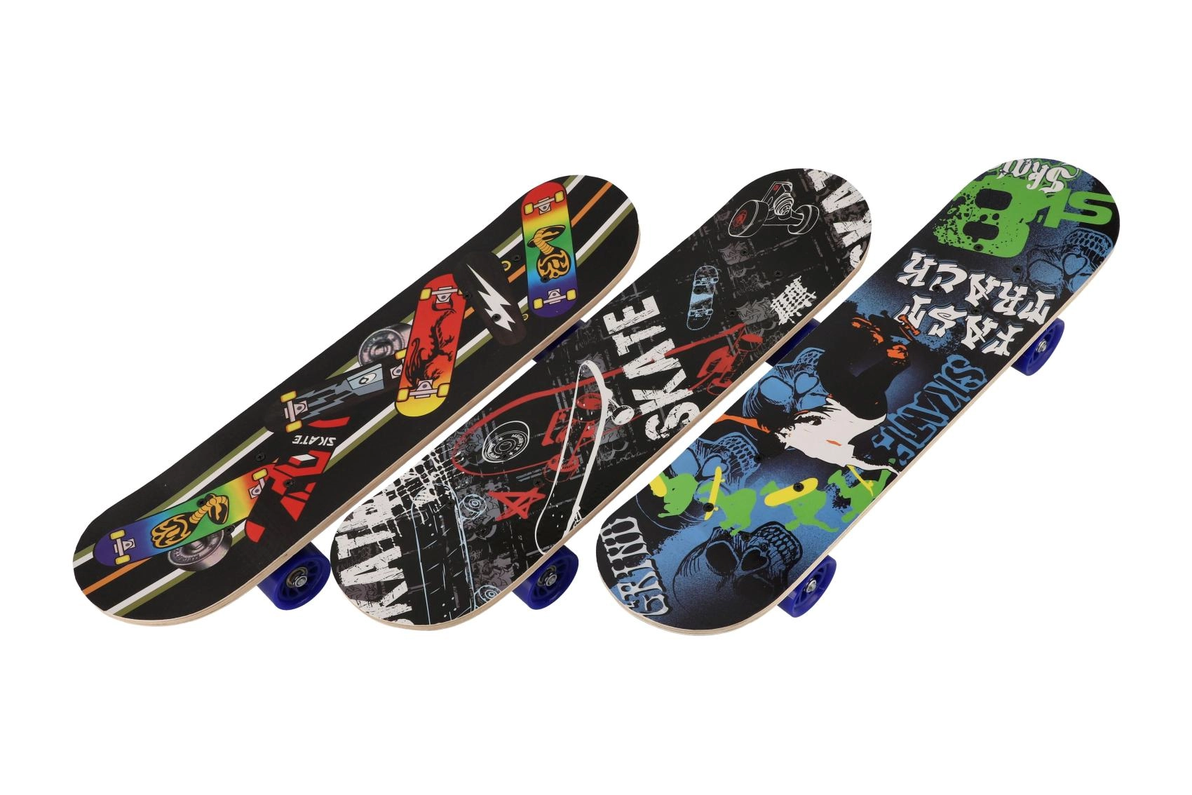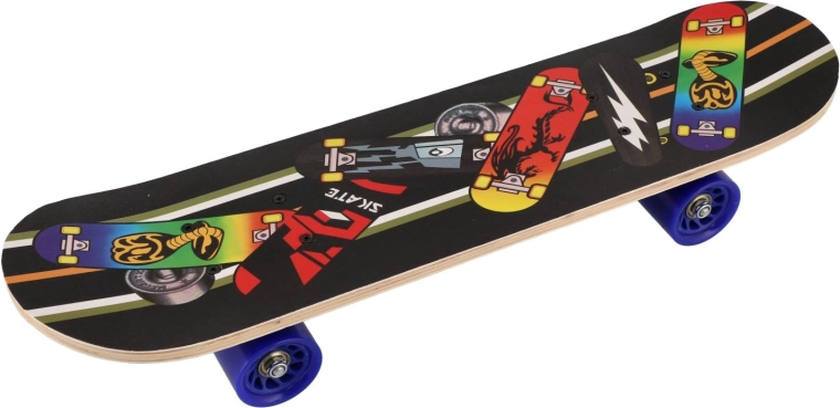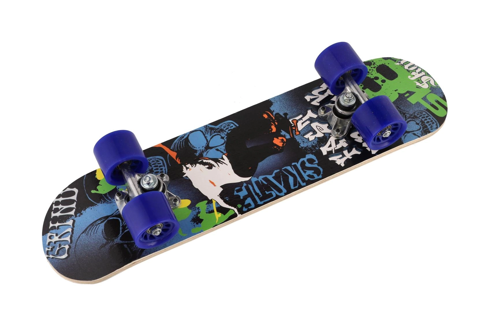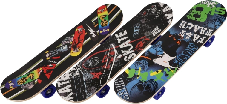 Et let og holdbart børneskateboard i ahorntræ på ca. 60 cm er et fremragende valg til små skatere. Det tilbyder en stærk og stabil konstruktion, aluminiumstrucks og kvalitetshjul i PU for en jævn og stille kørsel. Takket være den kompakte størrelse er det nemt at styre og egner sig til begyndere såvel som mere øvede børn. Maksimal belastning er 60 kg, og den attraktive grafik fås i 3 farvevarianter.
