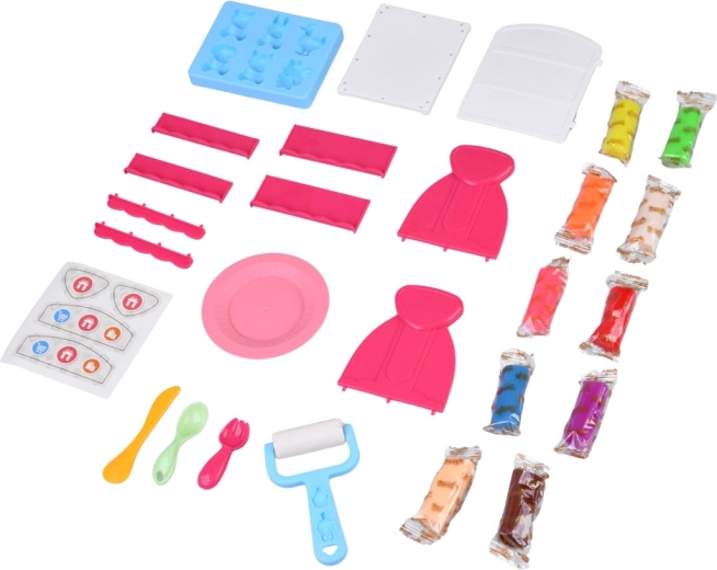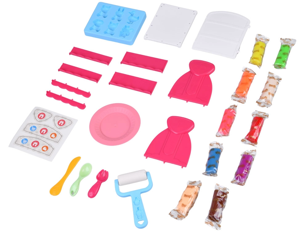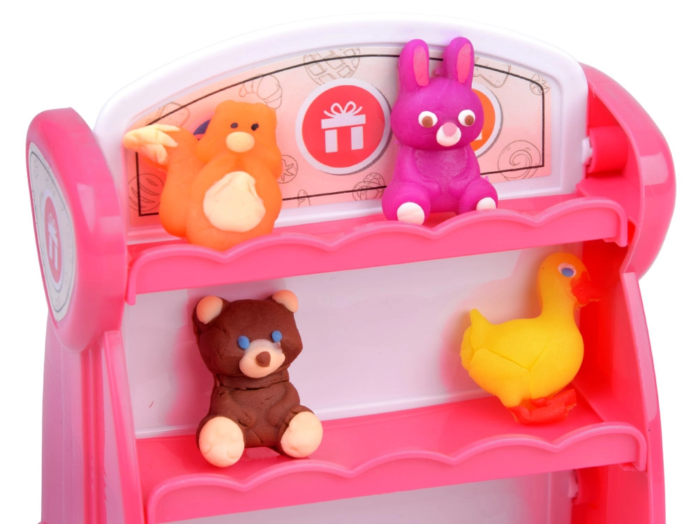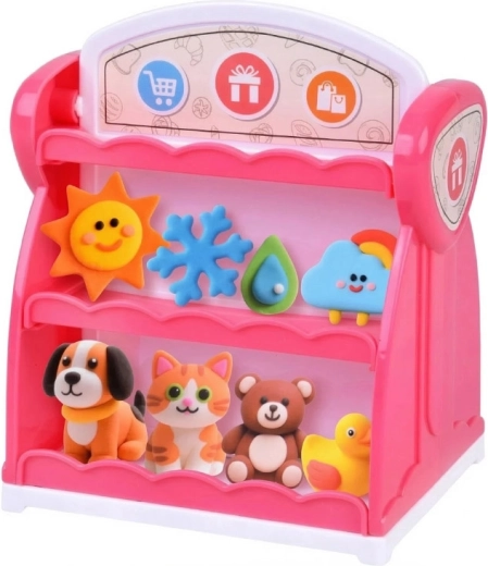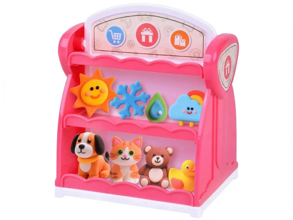 Dette rige modellervokssæt forvandler børneværelset til en lille udstillingsbutik. Den bløde og formbare modellervoks i 10 farver er let at arbejde med, mens formene gør det muligt hurtigt at skabe søde dyre- og “vejr”-motiver. De færdige værker kan børnene stolt udstille på den dobbeltsidede lyserøde reol med hylder.