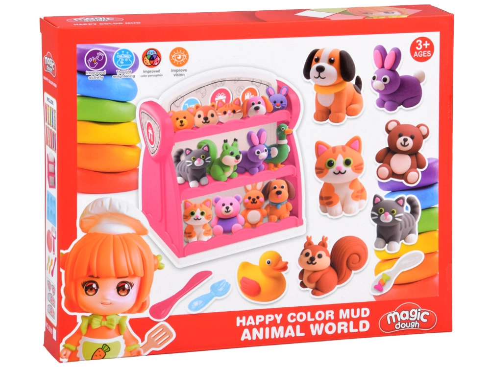 Slip barnets fantasi løs med et kreativt modellervokssæt, der indeholder 10 levende farver, et dobbeltsidet reolstativ formet som en lille butik, bløde dyre- og vejrmotforme samt praktiske værktøjer til formning. Et godt valg til udvikling af finmotorik, tålmodighed og kreativitet.