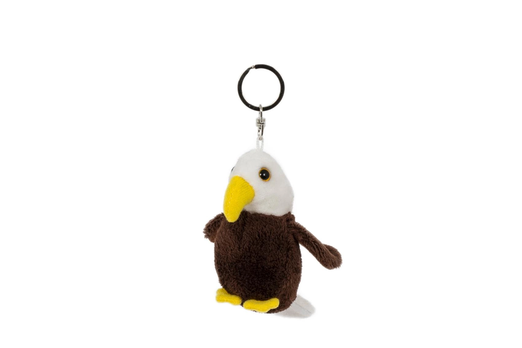 Sød plys-nøglering formet som en ørn er det ideelle tilbehør til nøgler, rygsæk og taske. Takket være den praktiske ring kan den nemt sættes fast, mens den bløde og behagelige kvalitet glæder både børn og voksne. Velegnet fra 0+, perfekt som lille plyskammerat til rejsen og som en stilfuld pynt til hverdagsbrug.