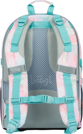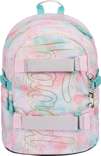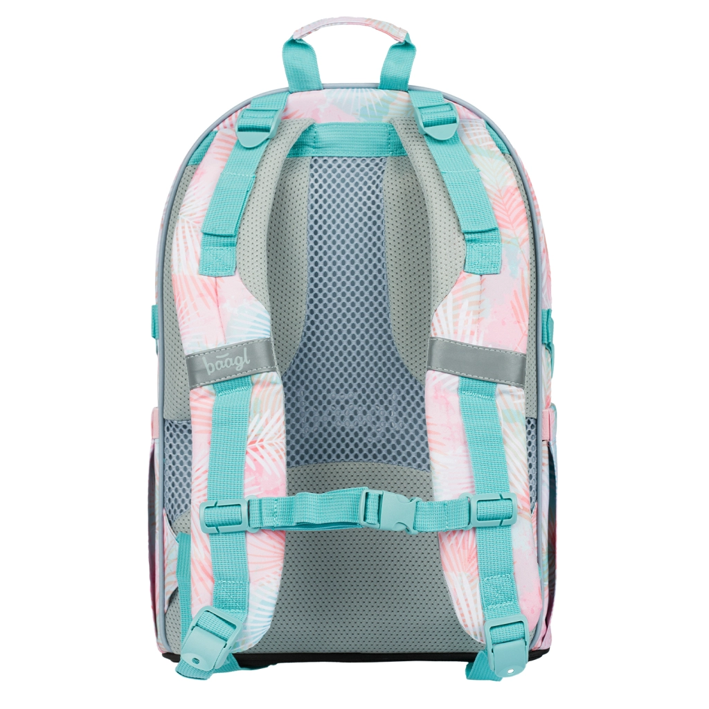 Skolesættet BAAGL Skate Sunset er det ideelle valg for elever, der vil kombinere komfort, funktionalitet og et friskt pasteldesign med palmeblade. Stjernen er den ergonomiske rygsæk med polstret ryg, justerbare skulder- og bryststropper samt kompressionsremme. Tre rum med organizer og polstret lomme til 15" laptop holder bøger og elektronik sikre og perfekt organiserede.