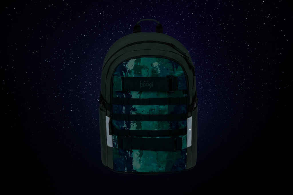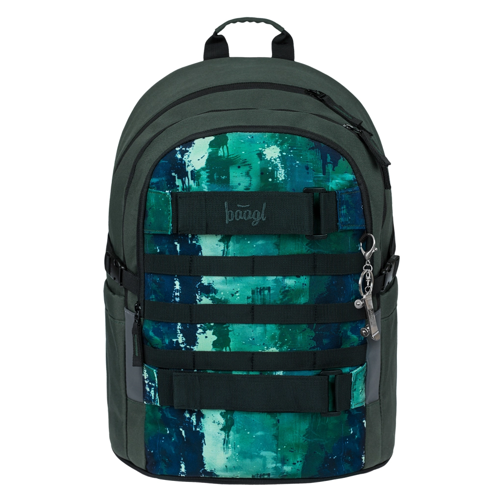 Skolesættet Baagl Skate Forest er designet til daglig brug i skolen, til træning og på farten. Rygsækken med anatomisk formet ryg og kompressionsstropper giver komfort selv ved fuld belastning, tre rum med organisator og en polstret lomme til 15" laptop holder alting overskueligt arrangeret. Det hele suppleres af et penalhus med dobbelt klap, en sammenfoldelig sportstaske, en bæltetaske til småting og et polstret cover til enhed.