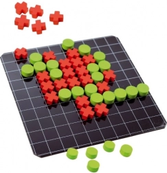 Spillet indeholder træbrikker i form af cirkler Ø 1,5 cm og kryds 1,5x1,5 cm. Alle brikker er forsynet med magnetisk bagside, hvilket gør dem nemme at bruge på pladen.