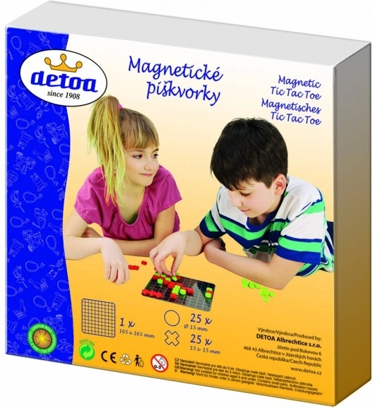 Magnetiske kryds og bolle Detoa er et populært strategispil for to spillere, ideelt til rejser. I den stilfulde og praktiske pakke finder du en metalplade og træspillebrikker med magnet.