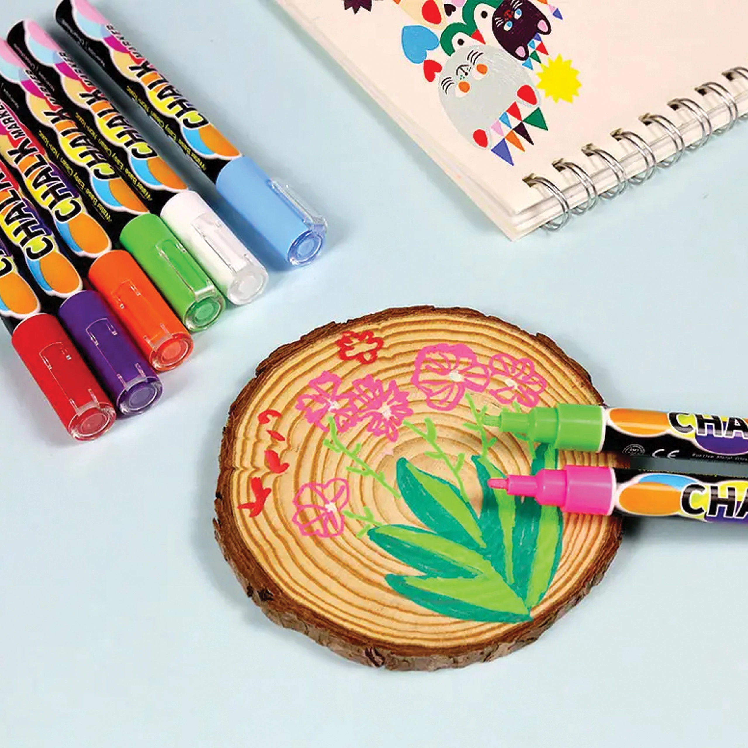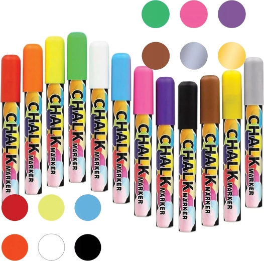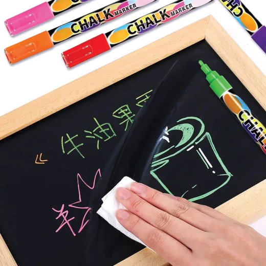 Flydende kridttuscher skaber klare, markante tekster uden støv og lugt. Perfekte til skoler, caféer og hjemmetavler.