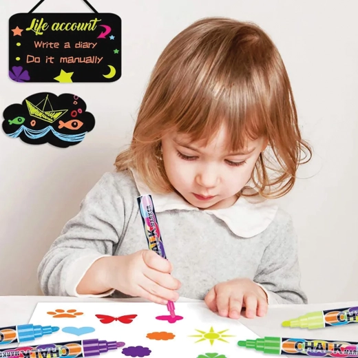 Et perfekt valg til skoler, kontorer, caféer og hjemmeorganisering. Erstatter klassisk støvende kridt, fremhæver tekster i udstillingsvinduer og på menutavler og understøtter kreativiteten hos børn og voksne.