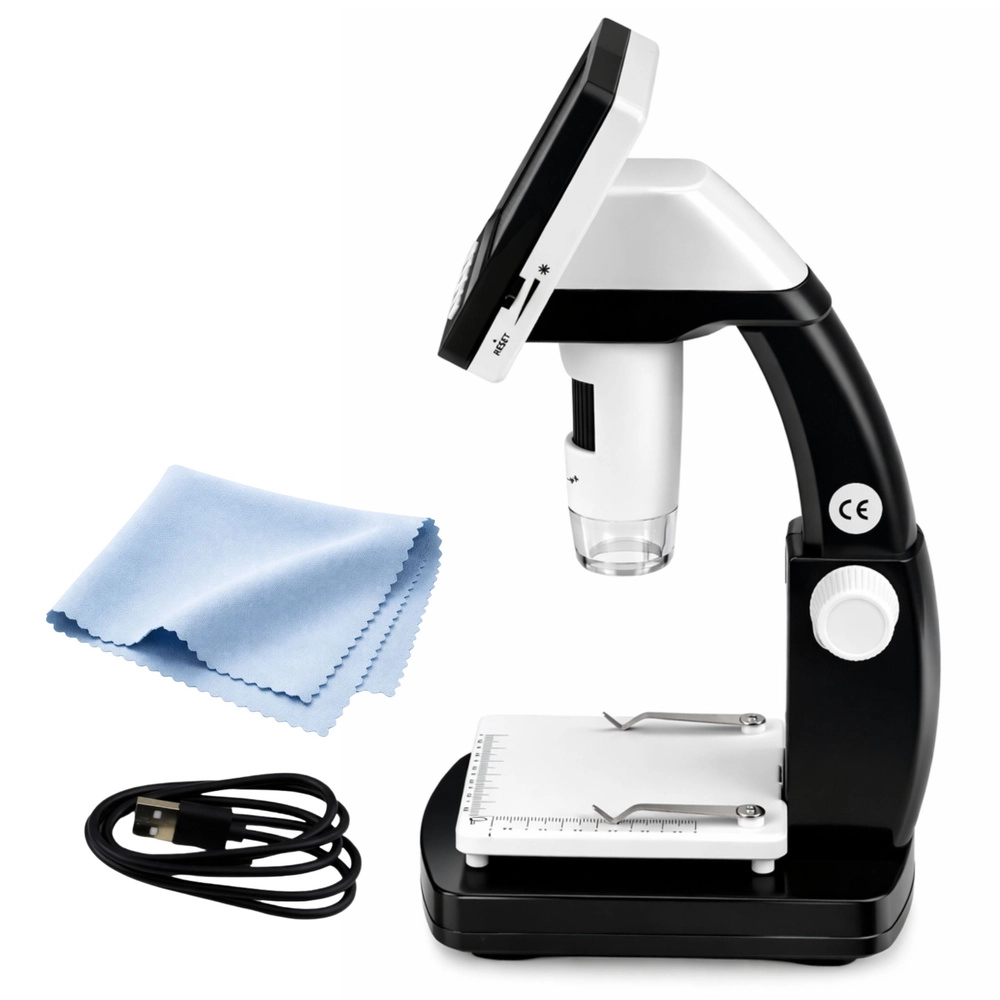 Oplev verdens detaljer med et digitalt mikroskop, der kombinerer en skarp 4,3" IPS-skærm, høj forstørrelse op til 1000× og præcis manuel fokusering. Takket være 8 LED-dioder ser du fine strukturer i materialer, elektronik eller biologiske prøver under alle forhold.