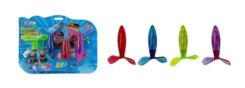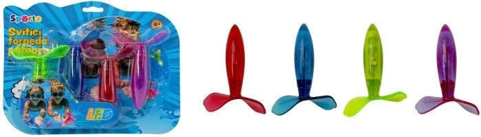 Oplev et lysshow under overfladen! De lysende torpedoer SPORTO er designet med fokus på en aerodynamisk form, så de efter kast ikke synker til bunden, men glider jævnt gennem vandet. Lyseffekten skaber et attraktivt spor i vandet, som øger både sjov og orientering under legen.
