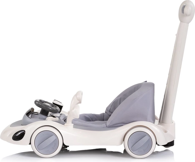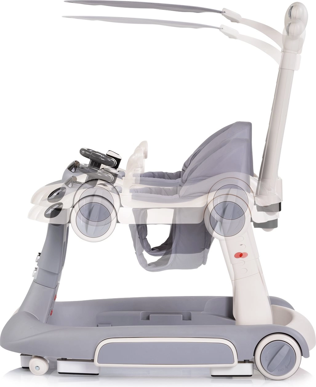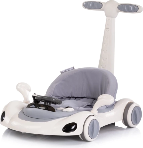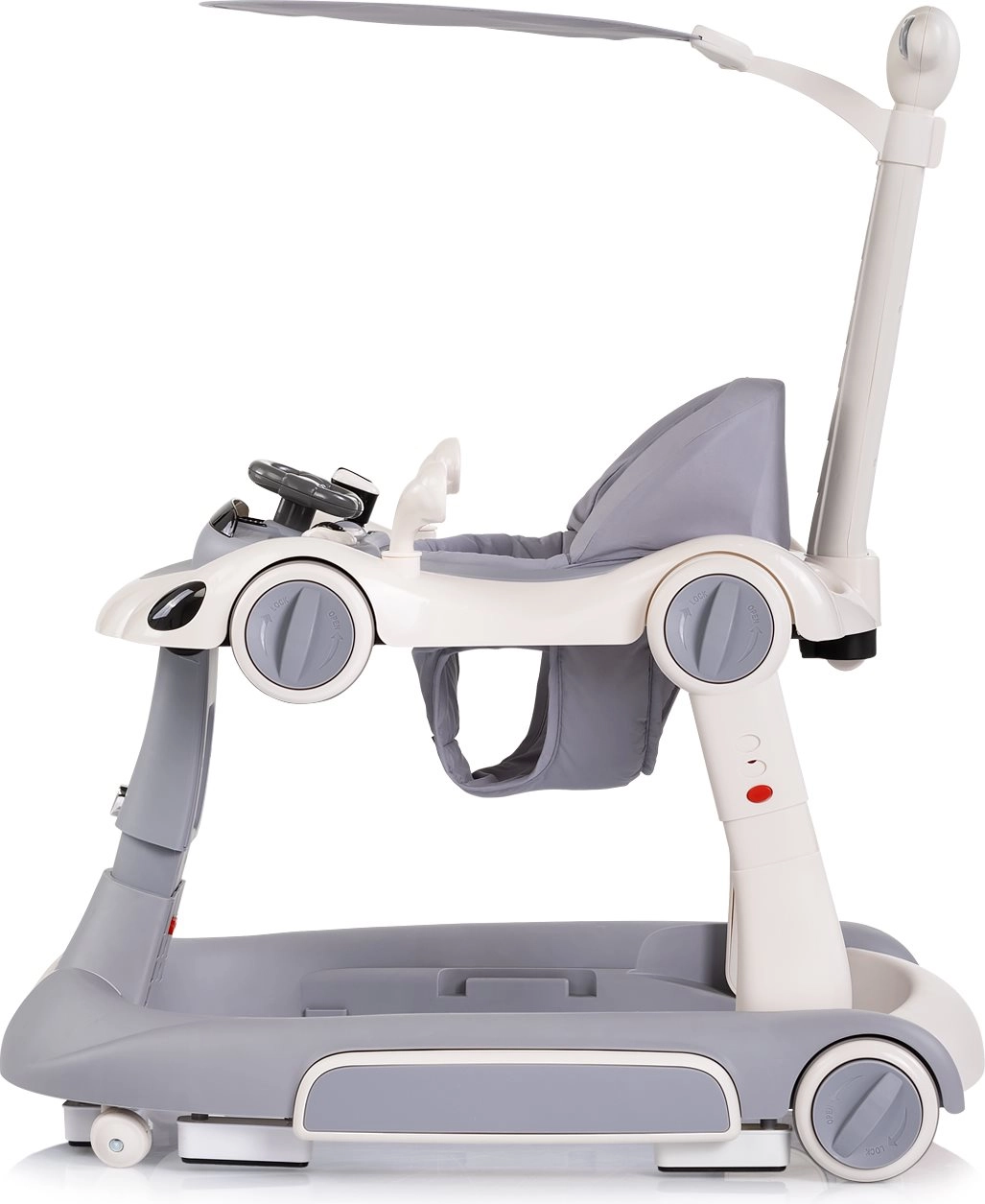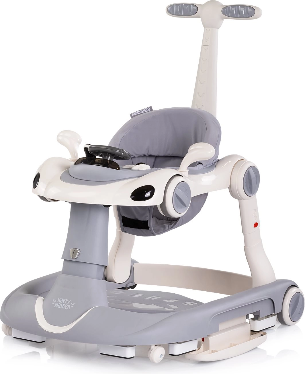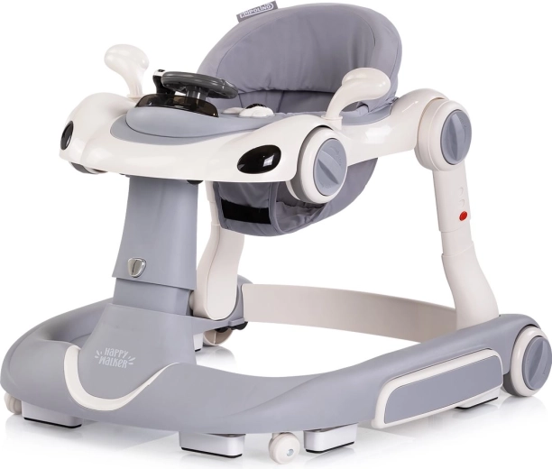 CHIPOLINO Happy Walker 5-i-1 er en multifunktionel løsning til aktive babyer. Den giver stabil støtte ved de første skridt, beroligende gyngefunktion, hoppefunktion til at styrke musklerne samt mulighed for at skubbe eller køre som på en løbecykel. Det interaktive panel med lys, musikknapper og bevægelige legetøj fremmer finmotorik og sanseudvikling.