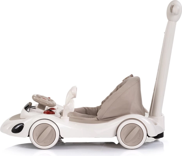 Det integrerede legepanel med lys og musik stimulerer sanserne og finmotorikken. Gyngemodus og hoppefunktion hjælper med at styrke muskler, balance og koordination. Højden tilpasses nemt barnets vækst, så produktet kan bruges i længere tid. Til elektronikken kræves 4× AA 1,5 V (medfølger ikke) – 2 stk. til musikpanelet og 2 stk. til forlygterne.