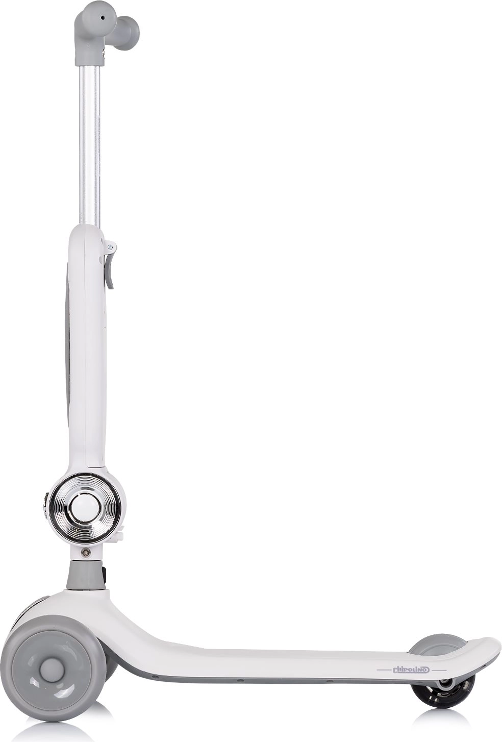 Den trehjulede konstruktion, det brede skridsikre trinbræt og den bageste fodbremse sikrer kontrol, komfort og sikker standsning.