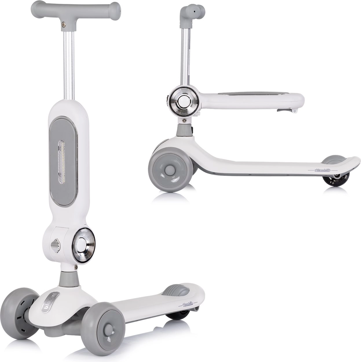 Multifunktionelt børneløbehjul CHIPOLINO Bloomi 2-i-1 kombinerer løbecykel og løbehjul i ét. Det tilbyder stabil 3-hjulet konstruktion, justerbart styr, bredt skridsikkert trinbræt og lysende PU-hjul, aktiveret af bevægelse. Sædet giver tryghed til mindre børn, og den bageste fodbremse sørger for sikker standsning. Ideel til træning af balance og koordination.