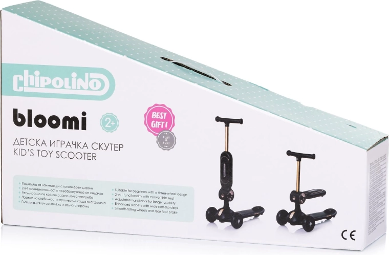 Løbehjul/gåcykel CHIPOLINO Bloomi 2-i-1 er det ideelle valg til dit barns første ture. Takket være sædet kan de mindste skubbe sig frem siddende og gradvist gå over til selvstændig stående kørsel. Den trehjulede konstruktion sikrer høj stabilitet, mens den brede skridsikre trædeflade og bageste fodbremse giver tryghed ved hvert trin.