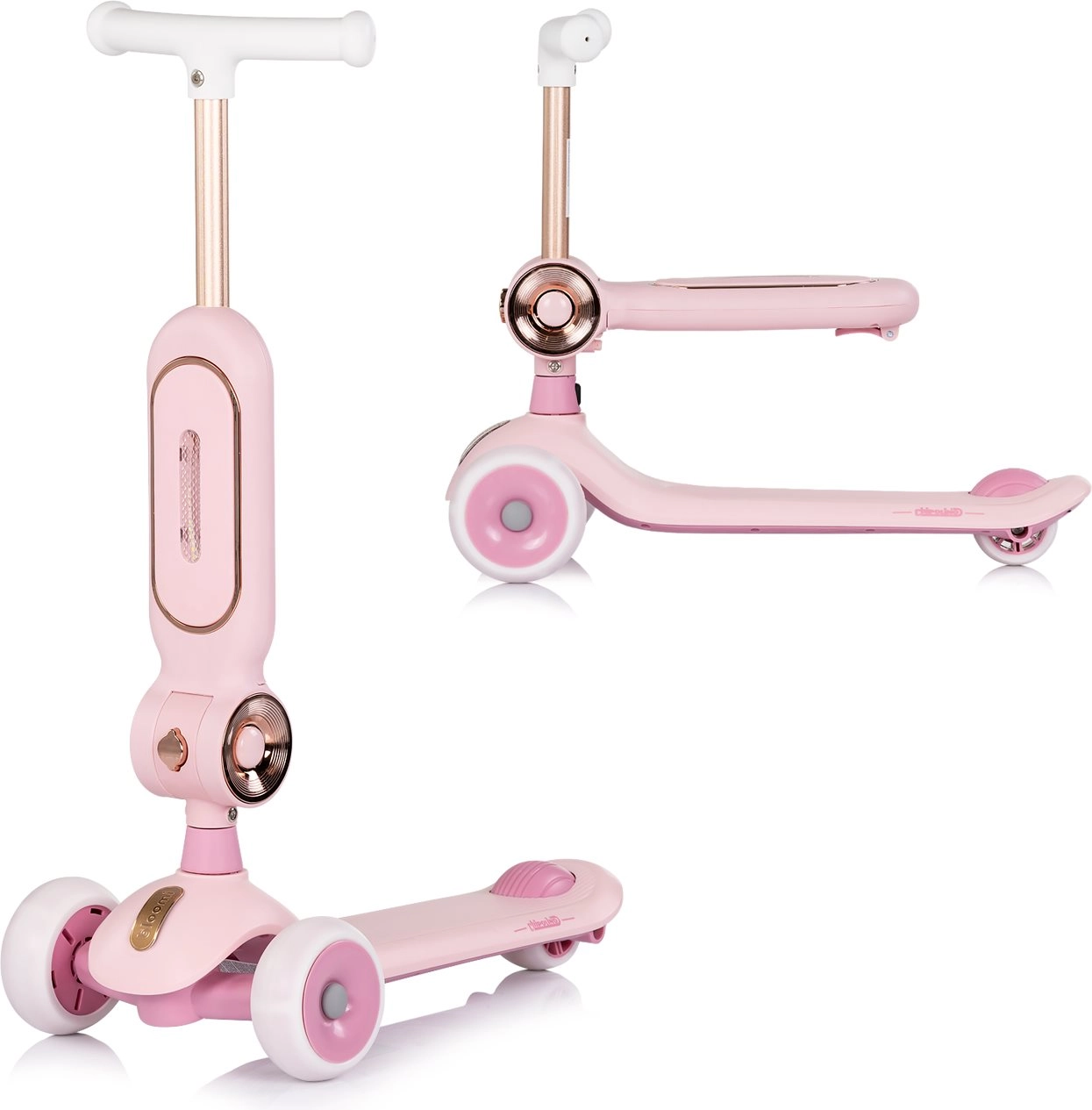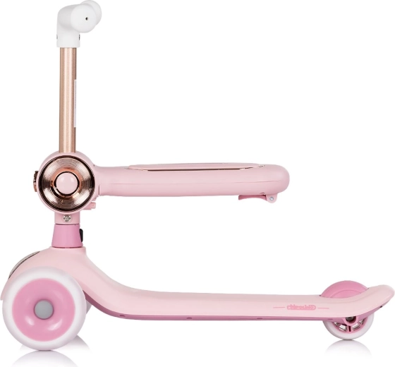 Børneløbehjul 2-i-1 CHIPOLINO Bloomi i rosa kombinerer løbehjul og gåcykel for maksimal alsidighed. Det tilbyder en stabil trehjulet konstruktion, lysende PU-hjul, en bred skridsikker trædeflade og en bagmonteret fodbremse for en sikker og sjov kørsel. Sædet giver støtte til de mindste og fremmer udvikling af balance og koordination.