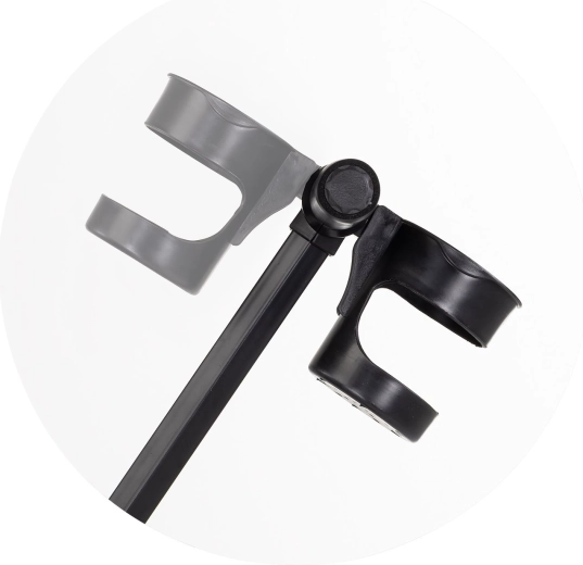 Den sammenklappelige kaleche beskytter mod sol og let vind, og de forreste og bageste kurve rummer legetøj og småting til turen. Der medfølger også kopholder.
