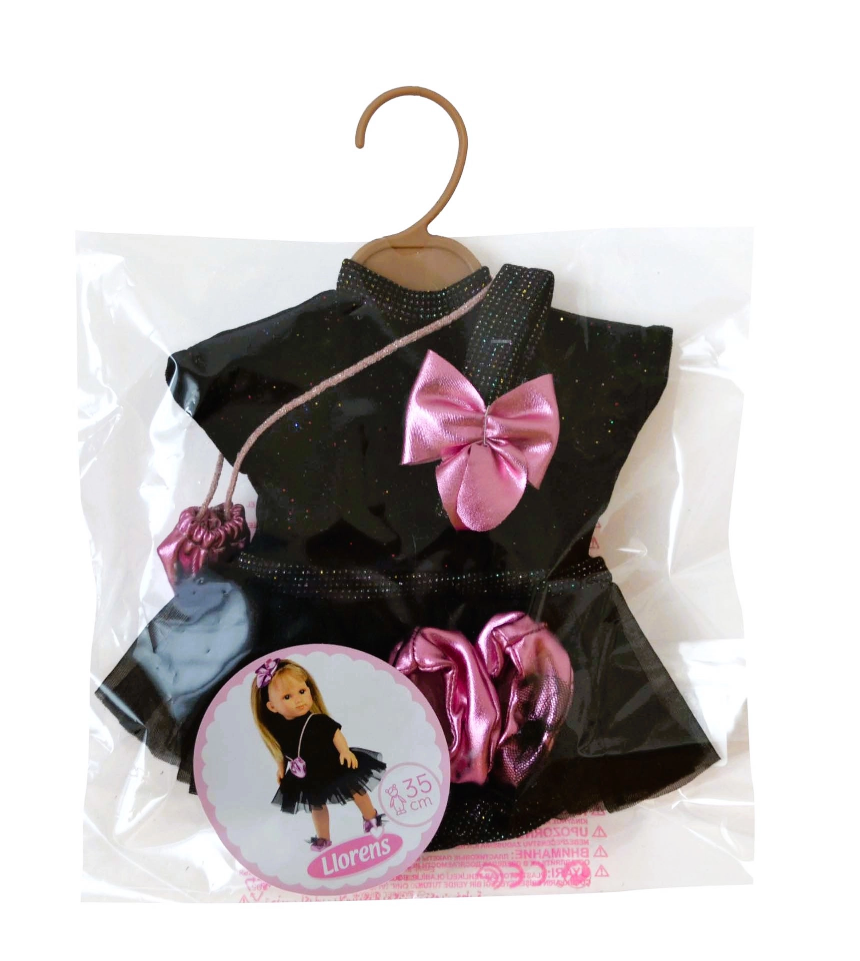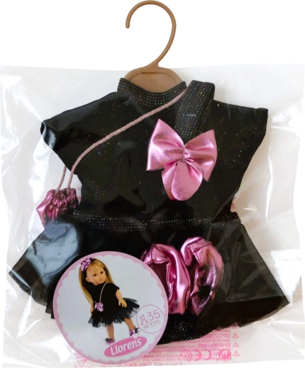 Forkæl din dukke med et stilfuldt outfit med dette 5-delte sæt til dukker Llorens 35 cm. Håndlavet i Spanien, indeholder 3 stykker tøj, en dekorativ hårelastik med sløjfe og en håndtaske. Kvalitetsforarbejdning, nemt at klæde på og ideelt til kreativ leg for børn fra 3 år.