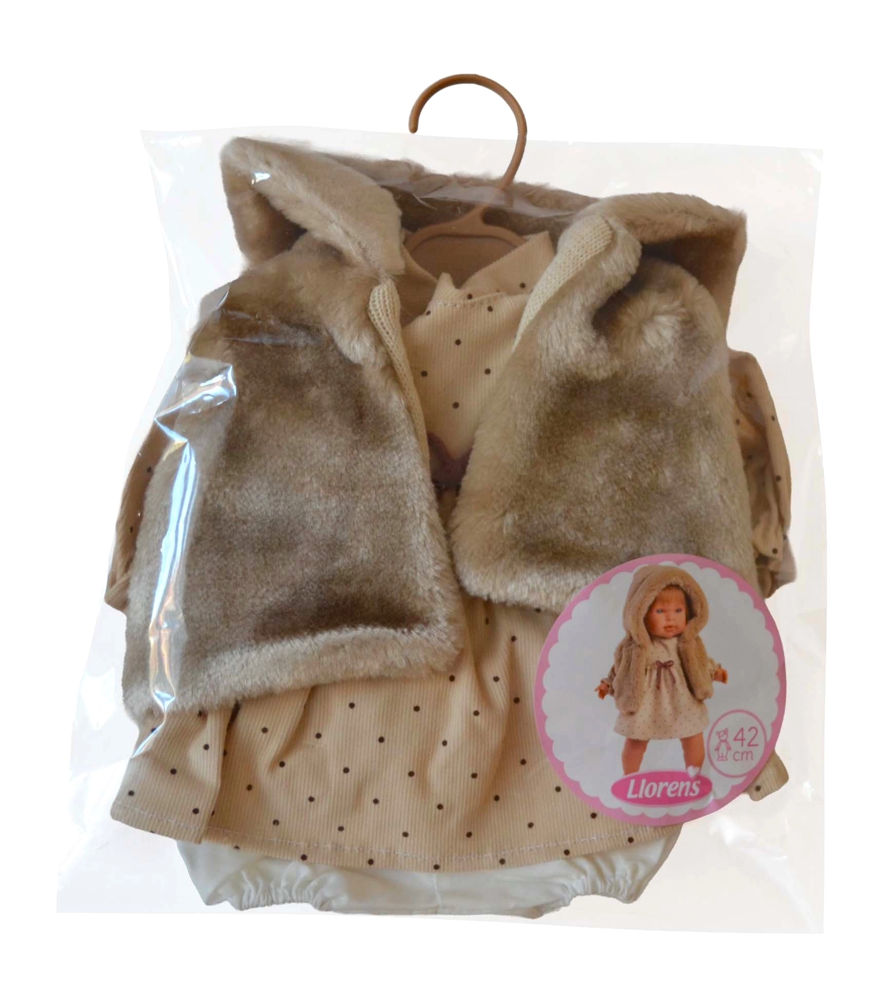 Forkæl din dukke med et nyt outfit med dette 3-delte Llorens-sæt til dukker på 42 cm. Tøjet udmærker sig ved omhyggeligt håndværk og giver børn masser af sjov ved påklædning og rolleleg.