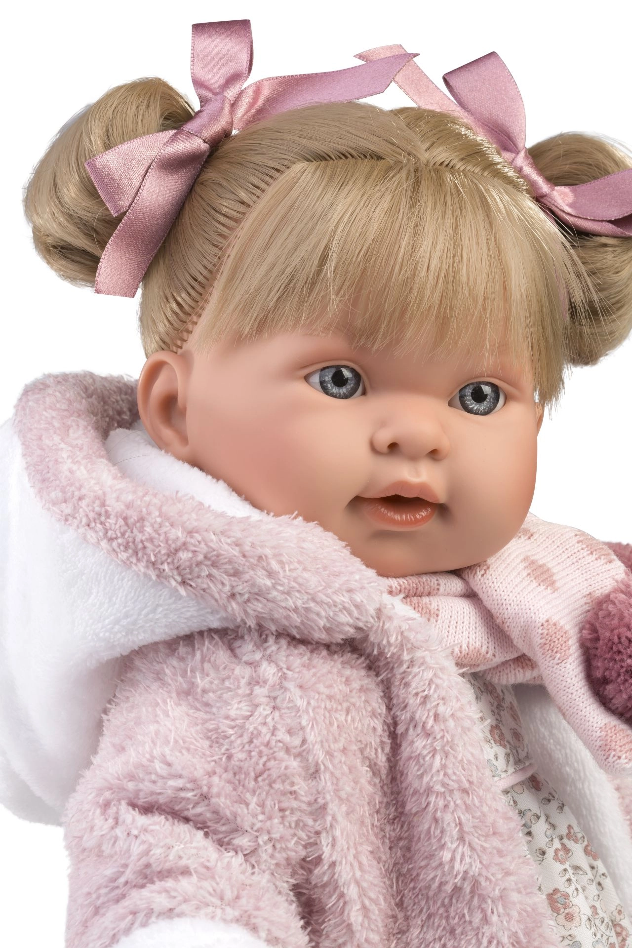 Den lyserøde, vamsete jakke med hvid kant og tilbehør med pomponer giver dukken et nuttet vinterlook, der skiller sig ud i enhver leg.