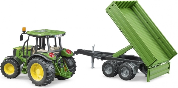 Opdag den detaljerede model af JOHN DEERE traktor med tipvogn i skala 1:16, som begejstrer både små landmænd og samlere. Den byder på mange funktionelle elementer – aftagelig frontvægt, holder til frontlæsser, for- og bagkobling, profil dæk samt styring med forlænget rat gennem taget. Tipvognen har nedklappelige sider, vippeplatform og kan stå selv takket være støtteben. Fremstillet af kvalitets-ABS i Tyskland.