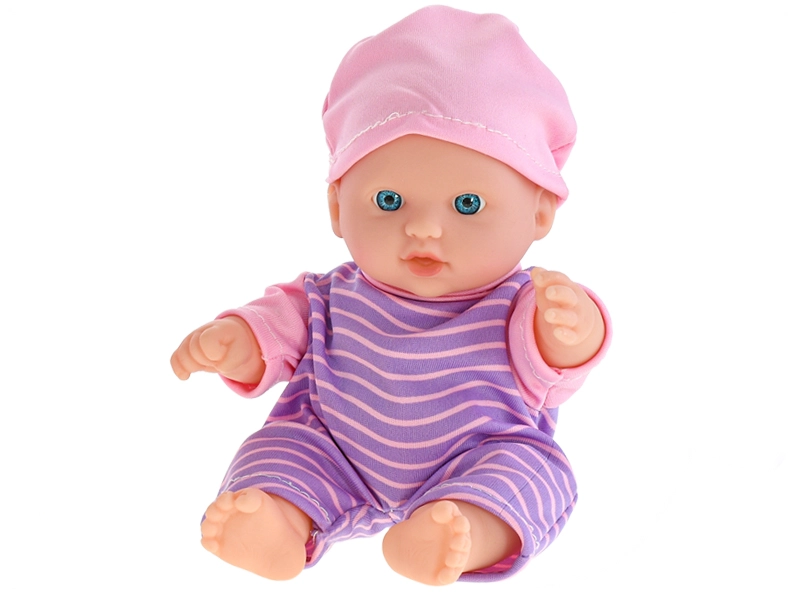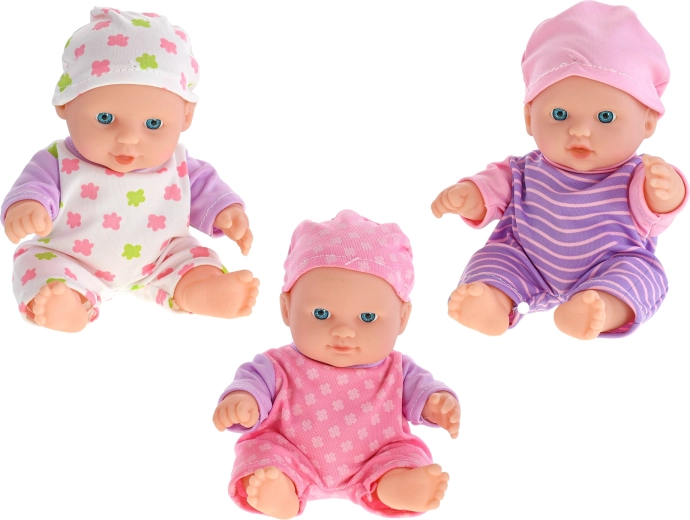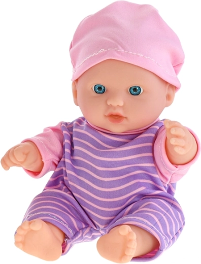 En nuttet siddende dukke på 20 cm er den ideelle ledsager til børn fra 18 måneder. Den har en solid plastkrop for høj holdbarhed og nem vedligeholdelse. Takket være de kompakte mål kan børn tage den med overalt. Vælg mellem tre varianter af pyjamas – stribet, hvid og lyserød.