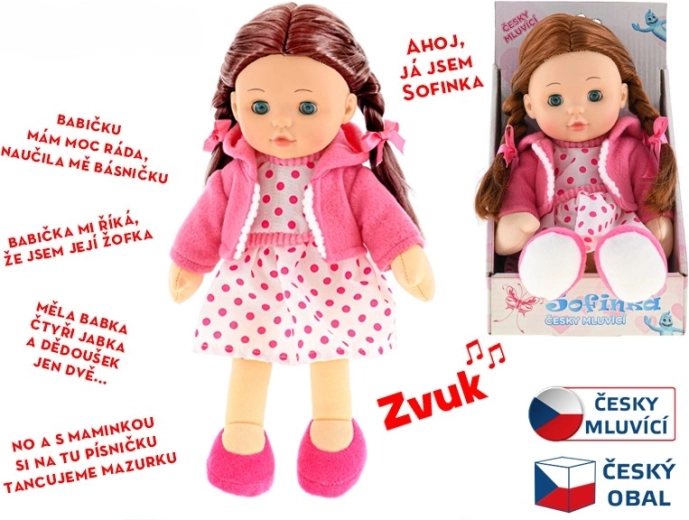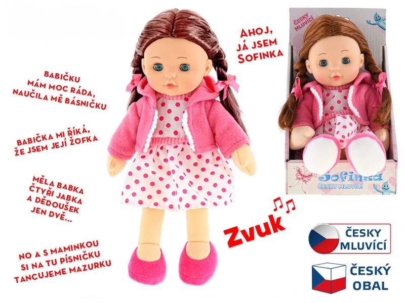 Dukken Sofinka er en ideel ledsager for børn fra 3 år. Hendes bløde krop er behagelig at røre ved og indbyder til at kramme, mens det realistiske udseende med brunt hår og blinkende øjne stimulerer barnets fantasi. Sofinka taler desuden tjekkisk, hvilket på en sjov måde udvikler kommunikation og empati.