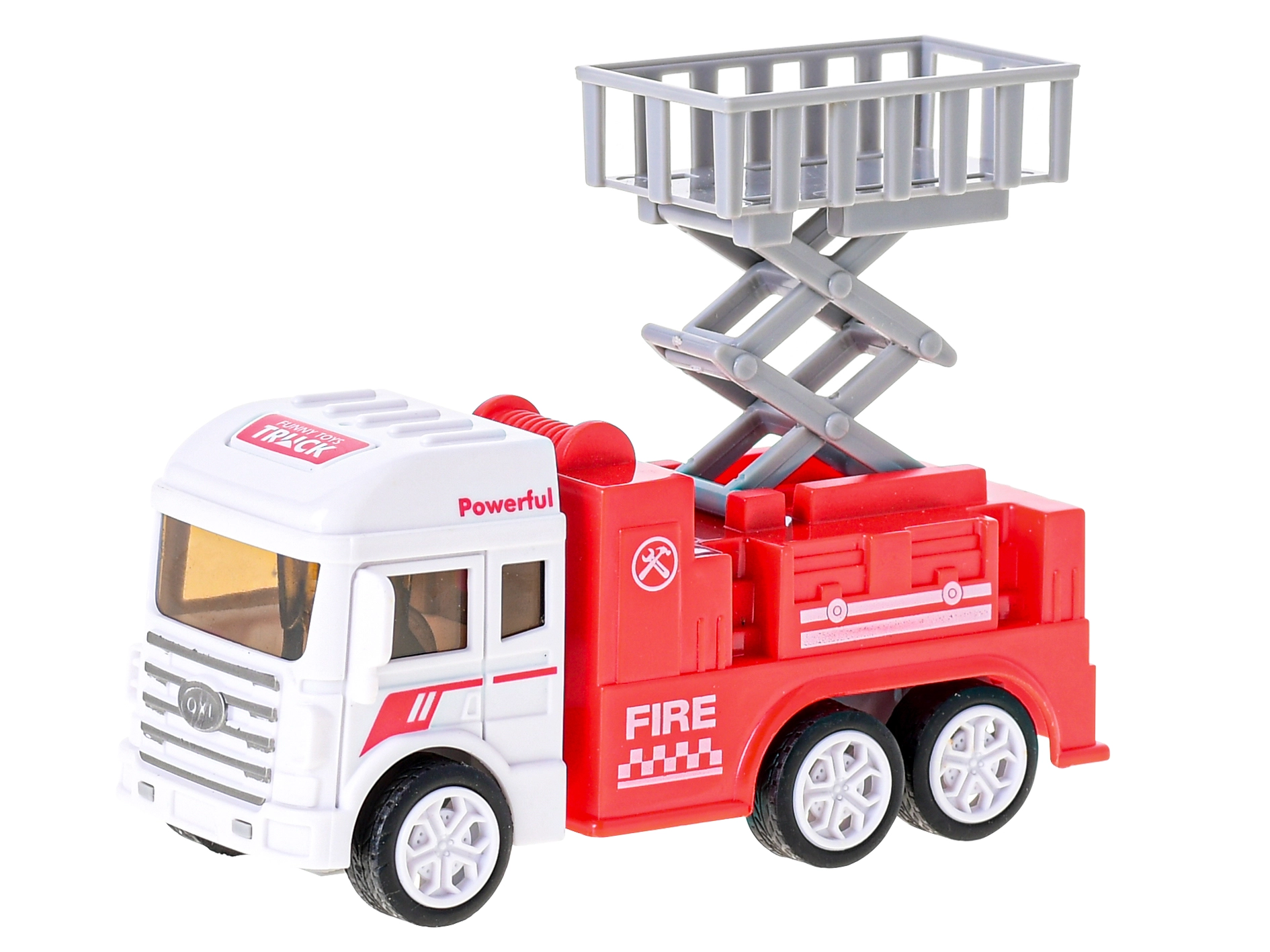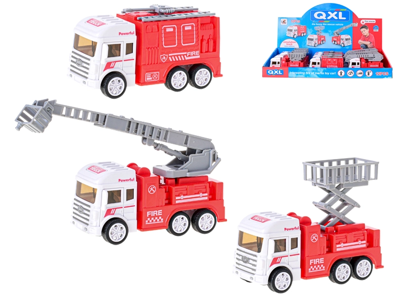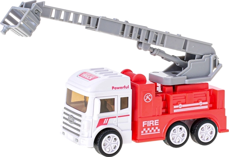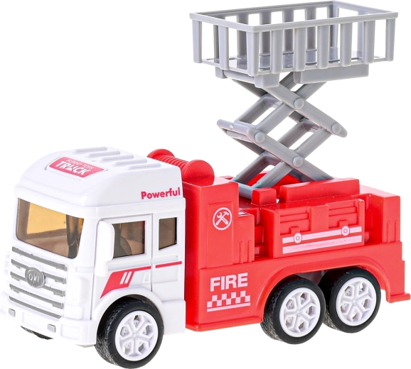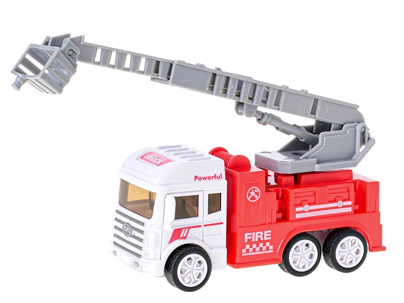 Det lille brandkøretøj i plast med friktionsmotor vil glæde alle små redningsfolk. Det fås i 3 forskellige varianter – med platform, stige og vandkanon. Takket være friktionsmotoren suser det afsted efter et skub og er klar til aktion. Størrelsen 12–13 cm, robust udførelse og nem betjening gør det til et super legetøj for børn fra 3 år.