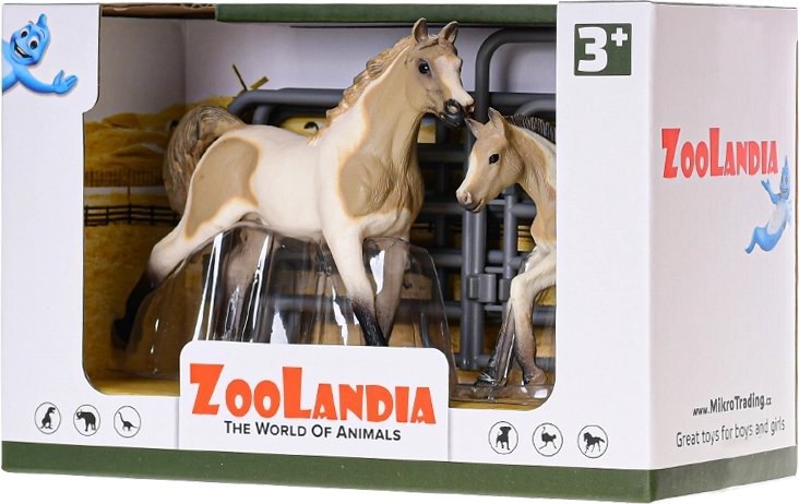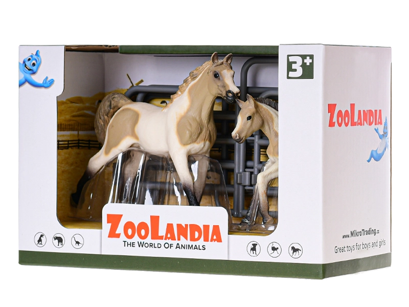 Dette figursæt fra kollektionen Zoolandia giver børn mulighed for at skabe deres egen gård. Hesten med føl suppleres af tematisk tilbehør, som udvider legemulighederne og udvikler fantasi, finmotorik og kærlighed til naturen. Realistiske detaljer og holdbar plastkonstruktion sikrer langvarig underholdning.