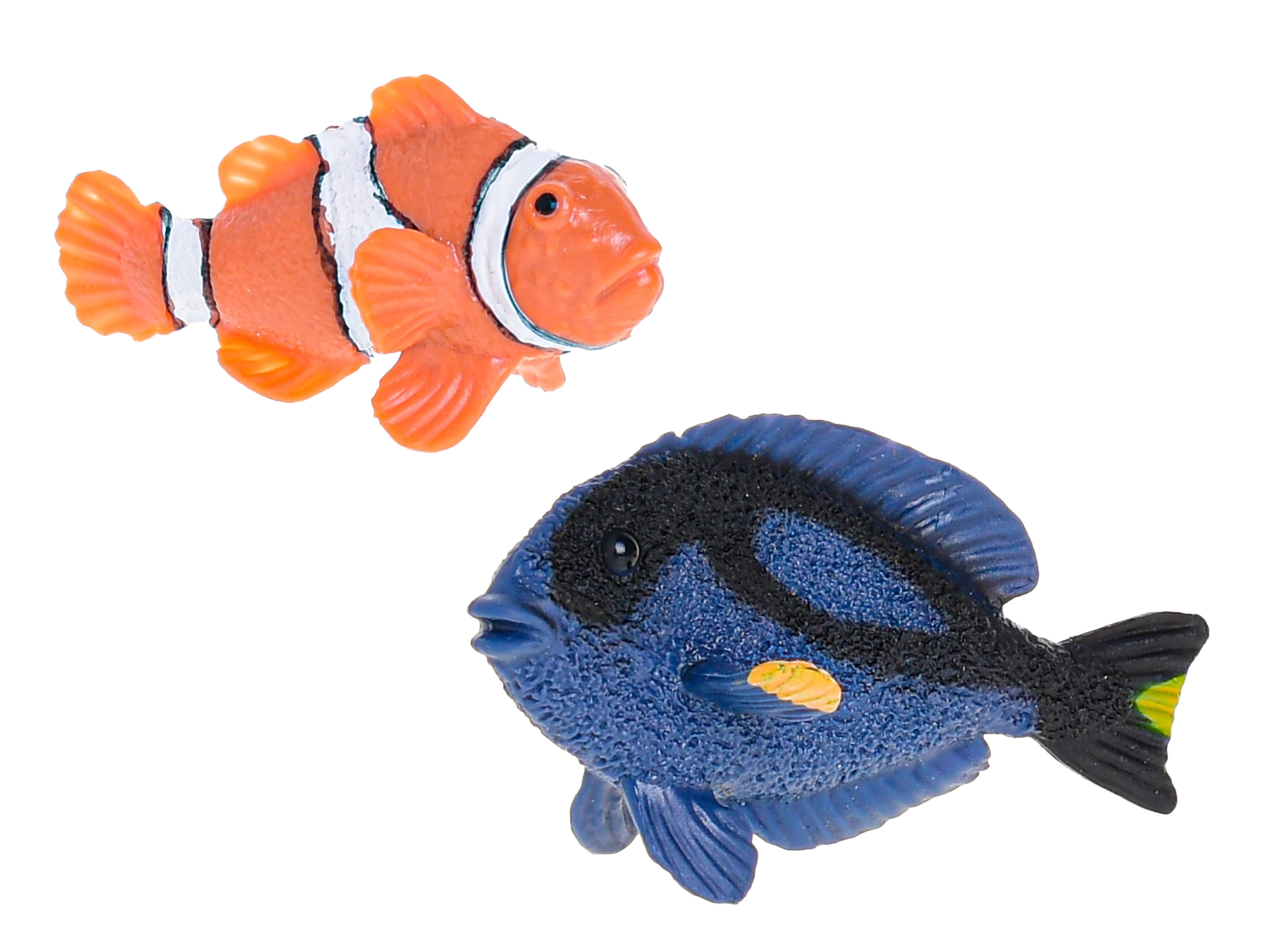 Vælg mellem 3 attraktive varianter: klovnfisk, trompetfisk og små hajer. Figurerne leveres i æske og er nemme at opbevare. De fremmer børns fantasi, ordforråd og finmotorik.