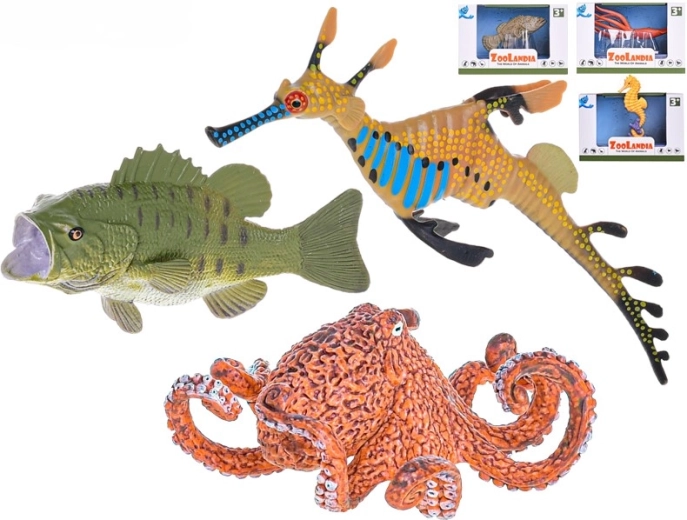 Oplev verden under overfladen med sættet Zoolandia havdyr. Byg dit eget akvarium og nyd kreativ leg med kvalitets plastikfigurer. Der er 6 forskellige arter – søhest, blæksprutte, squid, kejserfisk, havaborre og tangnål. Ideelt til udvikling af fantasi og temalege. Velegnet til børn fra 3 år.
