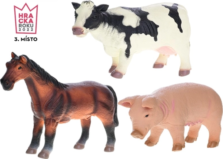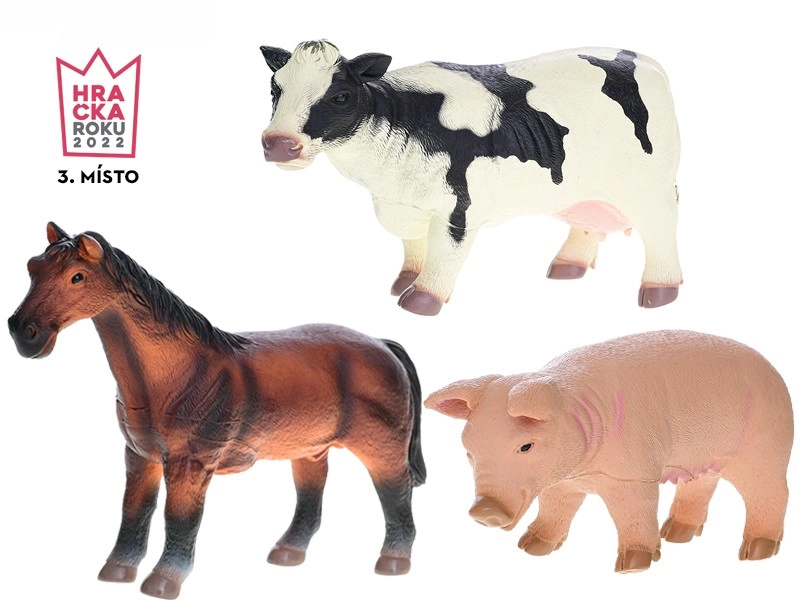 I pakken finder du 3 husdyr – en hest, en ko og en gris. Det robuste plastmateriale tåler daglig leg derhjemme og på farten og er let at rengøre. Dette sæt er et perfekt tilbehør til små dyreelskere og et godt grundlag for at opbygge sin egen gård.