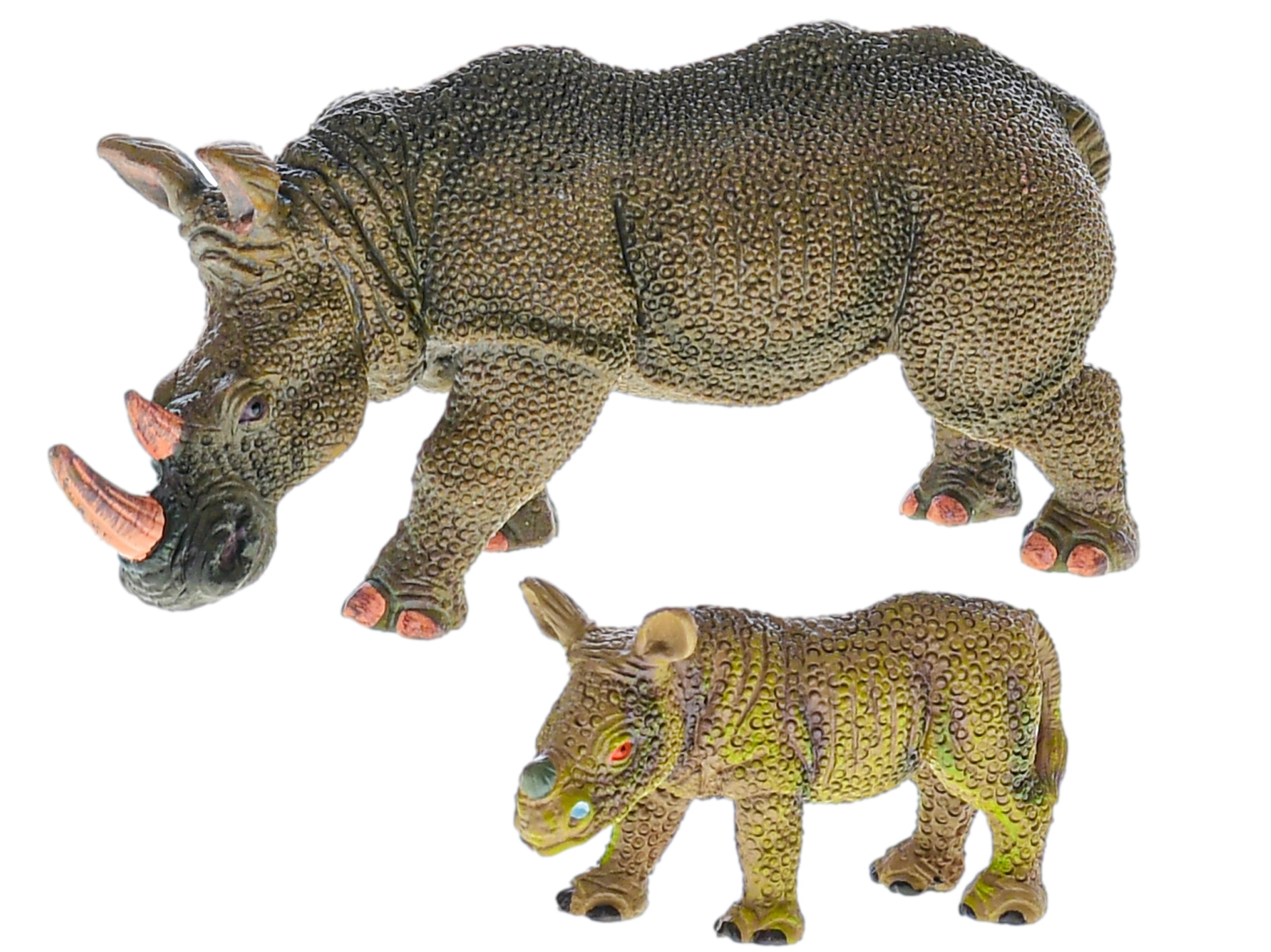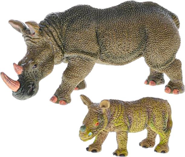 - Realistisk udførelse – troværdige detaljer af voksen næsehorn og unge