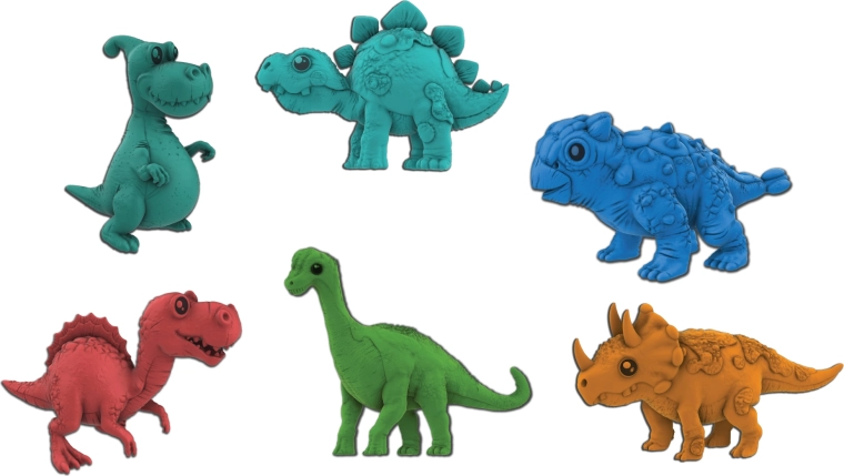 Æggene fås i to farver – rød og orange – og indeholder tilfældigt en af otte dinosaurarter: T‑Rex, Brontosaurus, Stegosaurus, Triceratops, Parasaurolophus, Ankylosaurus, Spinosaurus eller Plesiosaurus. En specifik farve og art kan ikke vælges på forhånd, hvilket sikrer et overraskelseselement ved hvert køb.