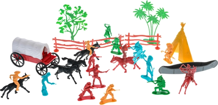 Træd ind i stemningen fra Det Vilde Vesten med et sæt, der rummer alt til spændende fortællinger: fra cowboys og indianere over naturtro heste til en detaljeret diligence. Takket være figurernes kompakte mål kan børn nemt opstille egne scener både hjemme og på farten. Robust udførelse i plast af høj kvalitet sikrer lang levetid og sikker leg.