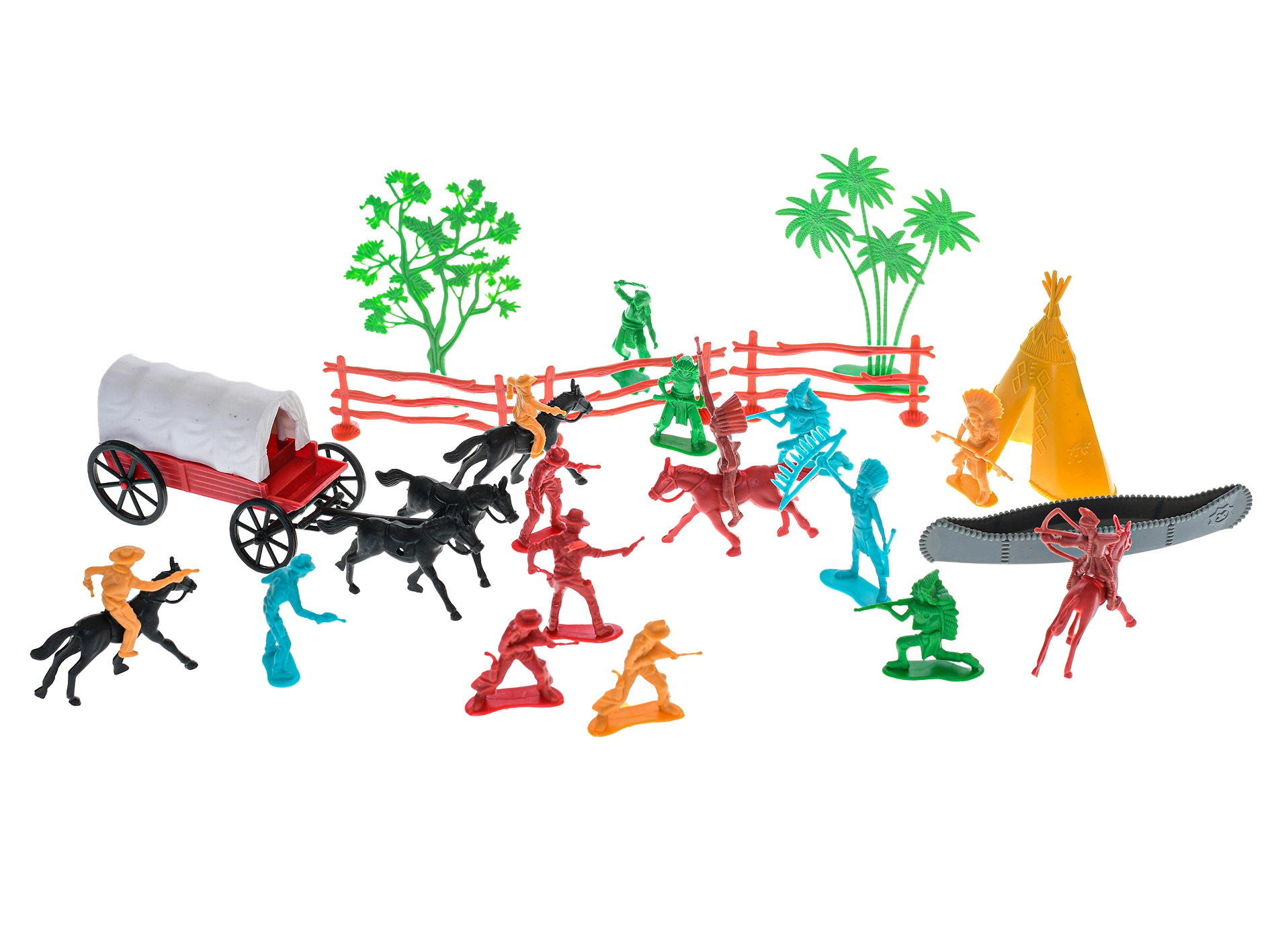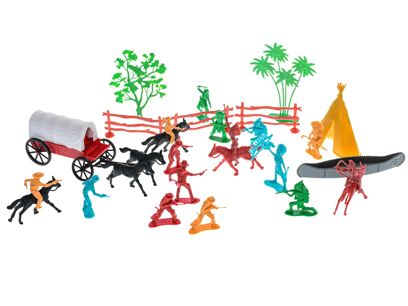 Opdag Det Vilde Vesten med dette rige sæt med 31 figurer, som vil begejstre små eventyrere. Her finder du cowboys, indianere, heste og en diligence, så børn kan skabe utallige egne historier. Figurerne er lavet af plast af høj kvalitet, er holdbare og sikre for børn fra 3 år. Styrker fantasien, udvikler kreativiteten og giver timevis af rolleleg.