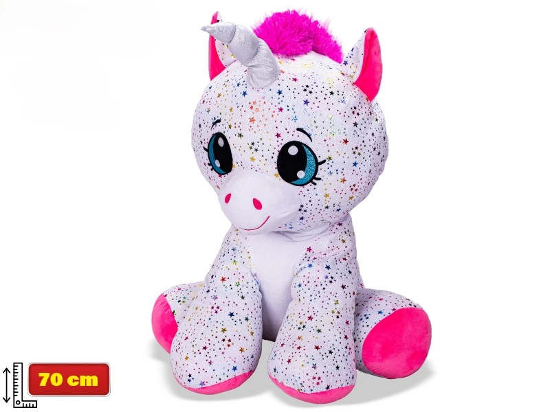 Den kæmpestore siddende enhjørning Star Sparkle forvandler ethvert børneværelse til et eventyrrige. Takket være den superbløde plys indbyder den til kram, mens glitrende accenter giver legetøjet et magisk udseende. Den siddende udformning sikrer stabilitet ved leg og når den står på en hylde.
