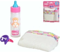 Dette sæt er et fantastisk supplement til små dukkepassere. Flasken med forsvindende mælk efterligner fodring realistisk, sutten beroliger enhver “baby”, og bleen sørger for renlighed under legen. Kompatibel med de fleste dukker i størrelsen 38–43 cm.